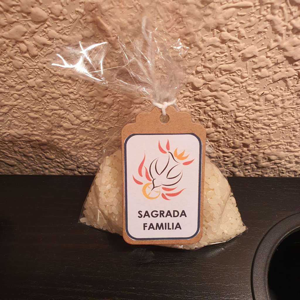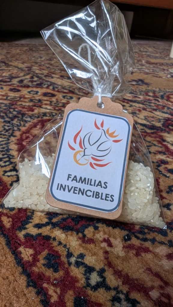 Como signo concreto de esta apertura y comunión, realizamos un gesto sencillo pero significativo: orar unos por otros, especialmente cada realidad por otra elegida por el Espíritu Santo. Cada realidad estaba representada por un saquito de arroz, que simbolizaba nuestra oración. Cada saquito llevaba un nombre y quedaba atado a la realidad que lo recibe. El lazo nos recordó que no caminamos solos, que lo que vive uno lo vivimos todos, y que podemos sostenernos ante Dios unos a otros. El arroz es semilla; nuestra oración, aunque breve y silenciosa, es semilla que Dios puede hacer germinar.